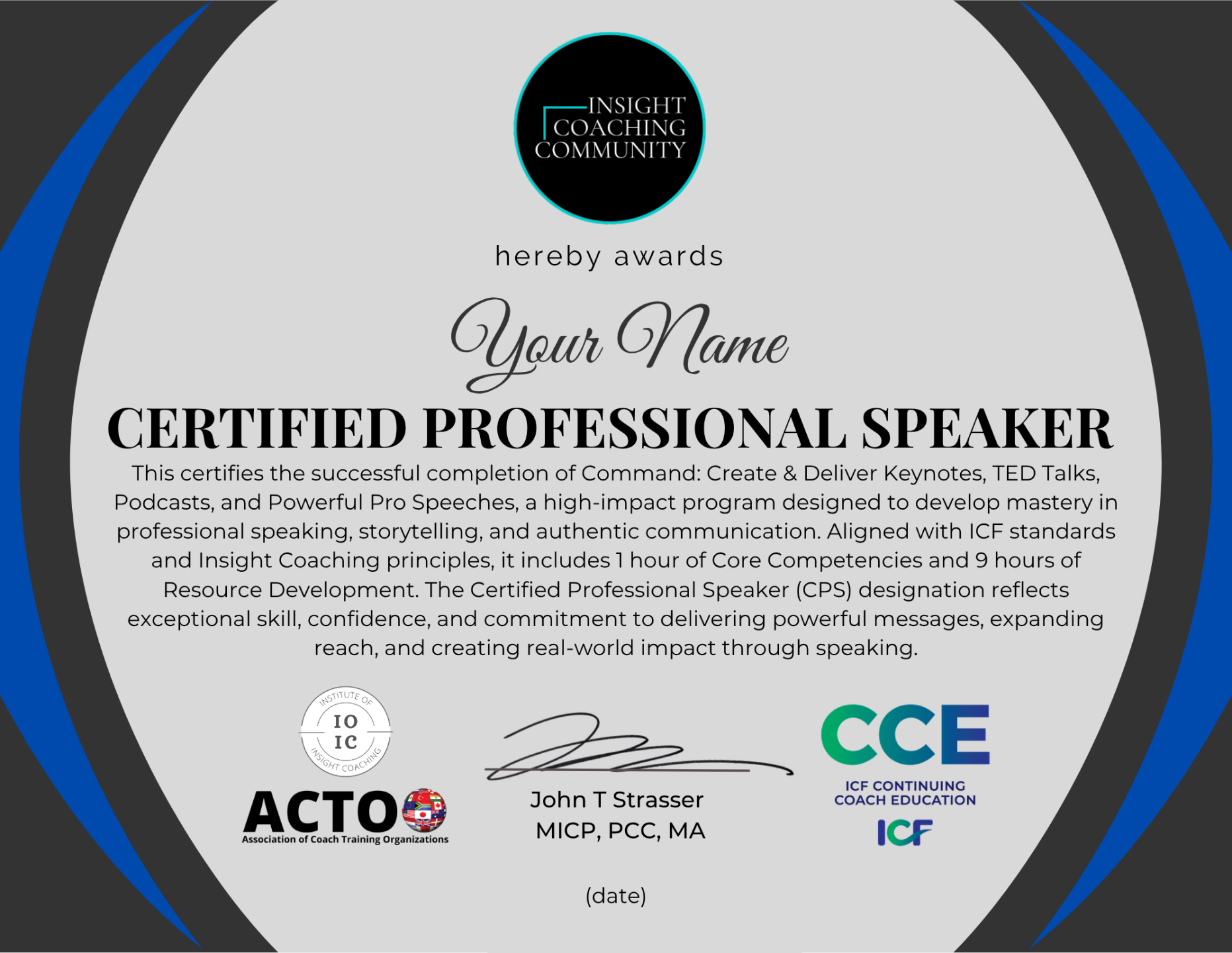 Command: ICF Accredited CCE Program for Creating & Delivering Keynotes, TED Talks, Podcasts, and Powerful Professional Talks